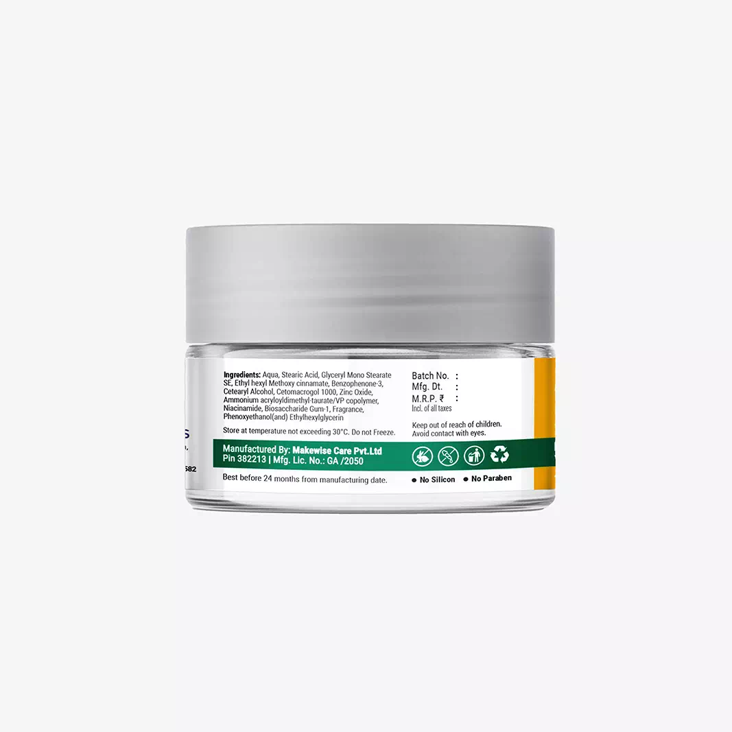 Ingredients: Aqua, Stearic Acid, Glyceryl Mono Stearate SE, Ethyl hexyl Methoxy cinnamate, Benzophenone-3, Cetearyl Alcohol, Cetomacrogol 1000, Zinc Oxide, Ammonium acryloyldimethyl-taurate/VP copolymer, Niacinamide, Biosaccharide Gum-1, Fragrance, Phenoxyethanol(and) Ethylhexylglycerin