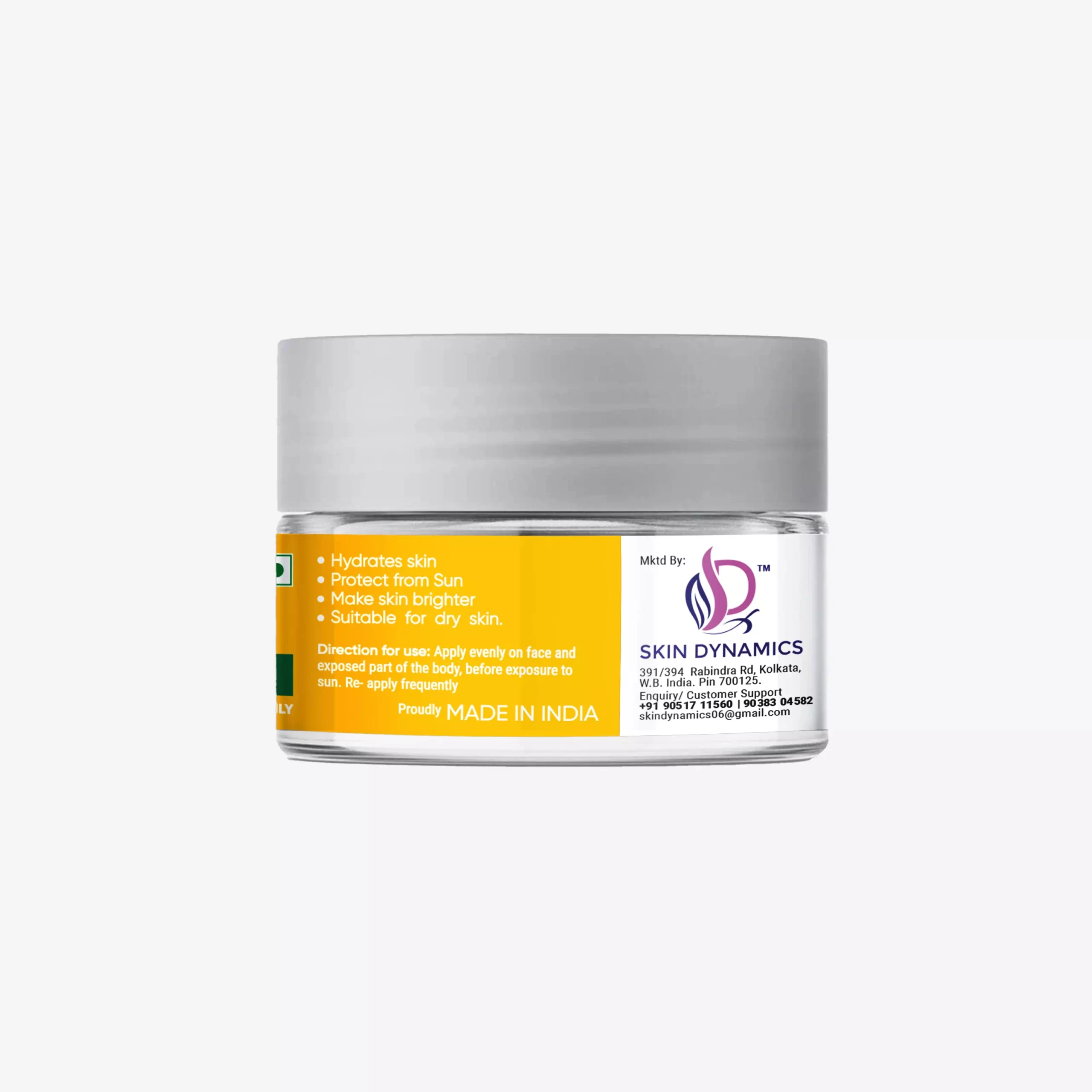 Direction for use: Apply evenly on face and exposed part of the body, before exposure to sun. Re- apply frequently