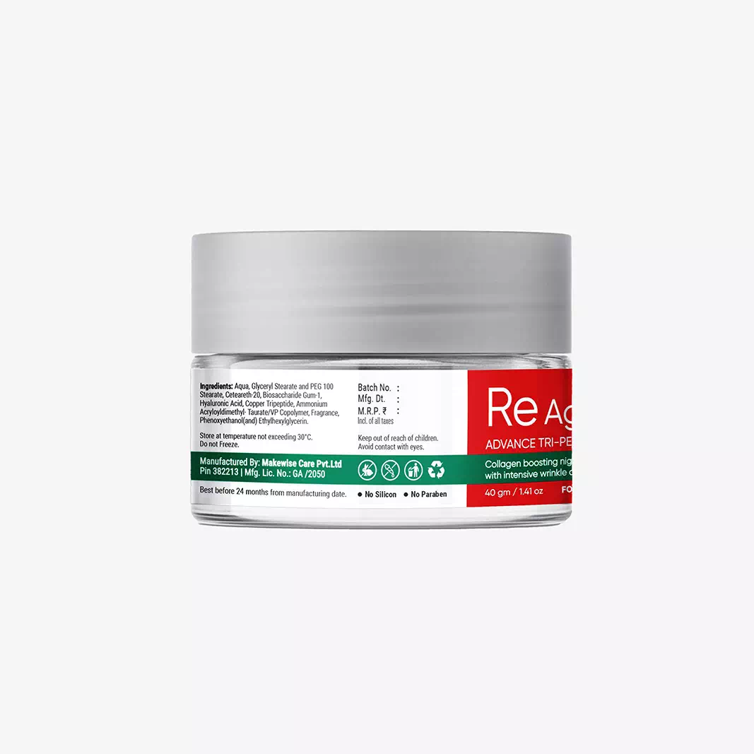 Re Aging Advance Tri-Peptide Formula Collagen boosting night repair cream with intensive wrinkle care • Boost Collagen • Hold Elasticity • Tighten & Brighten Skin Surface