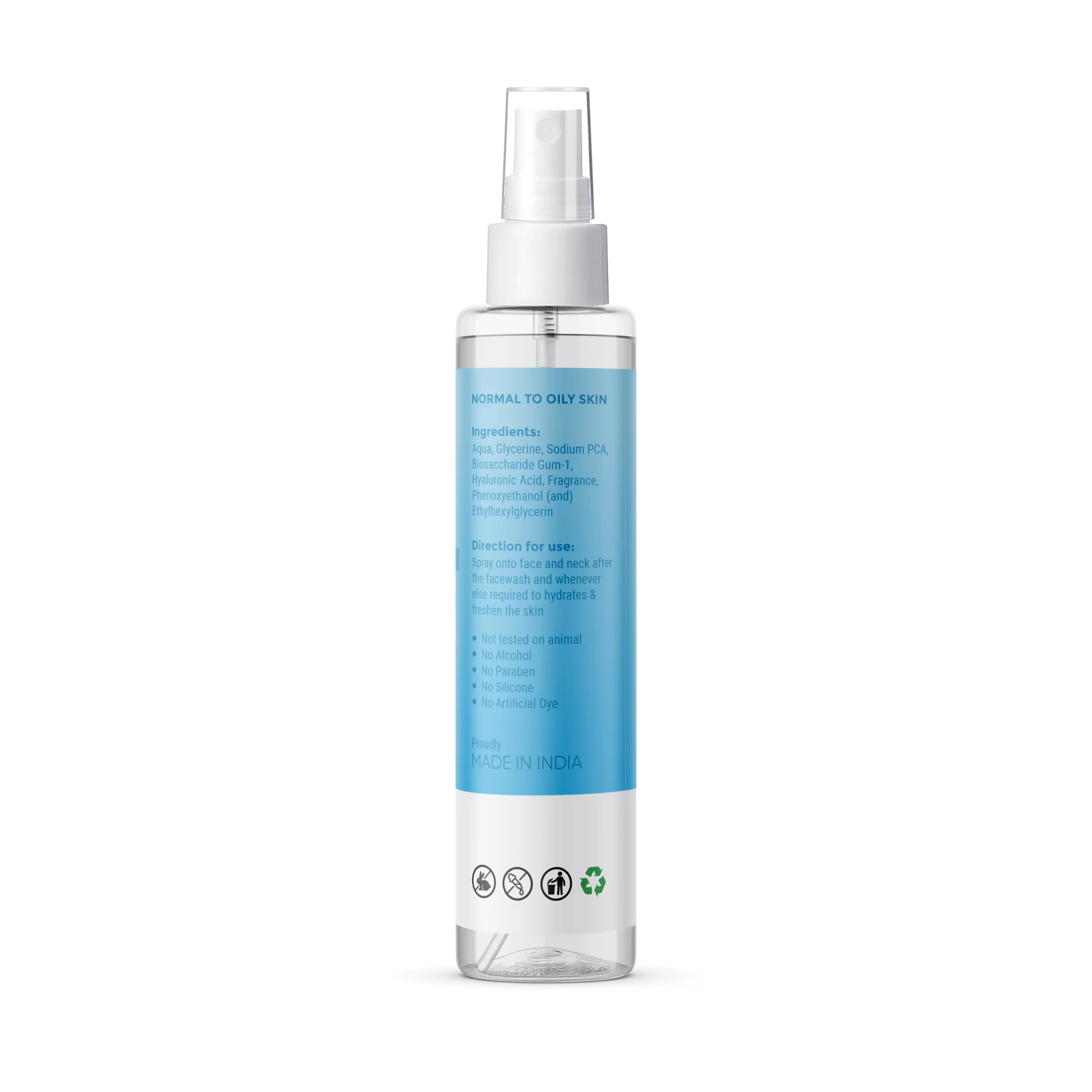 Direction for use: Spray onto face and neck after the facewash and whenever else required to hydrates & freshen the skin