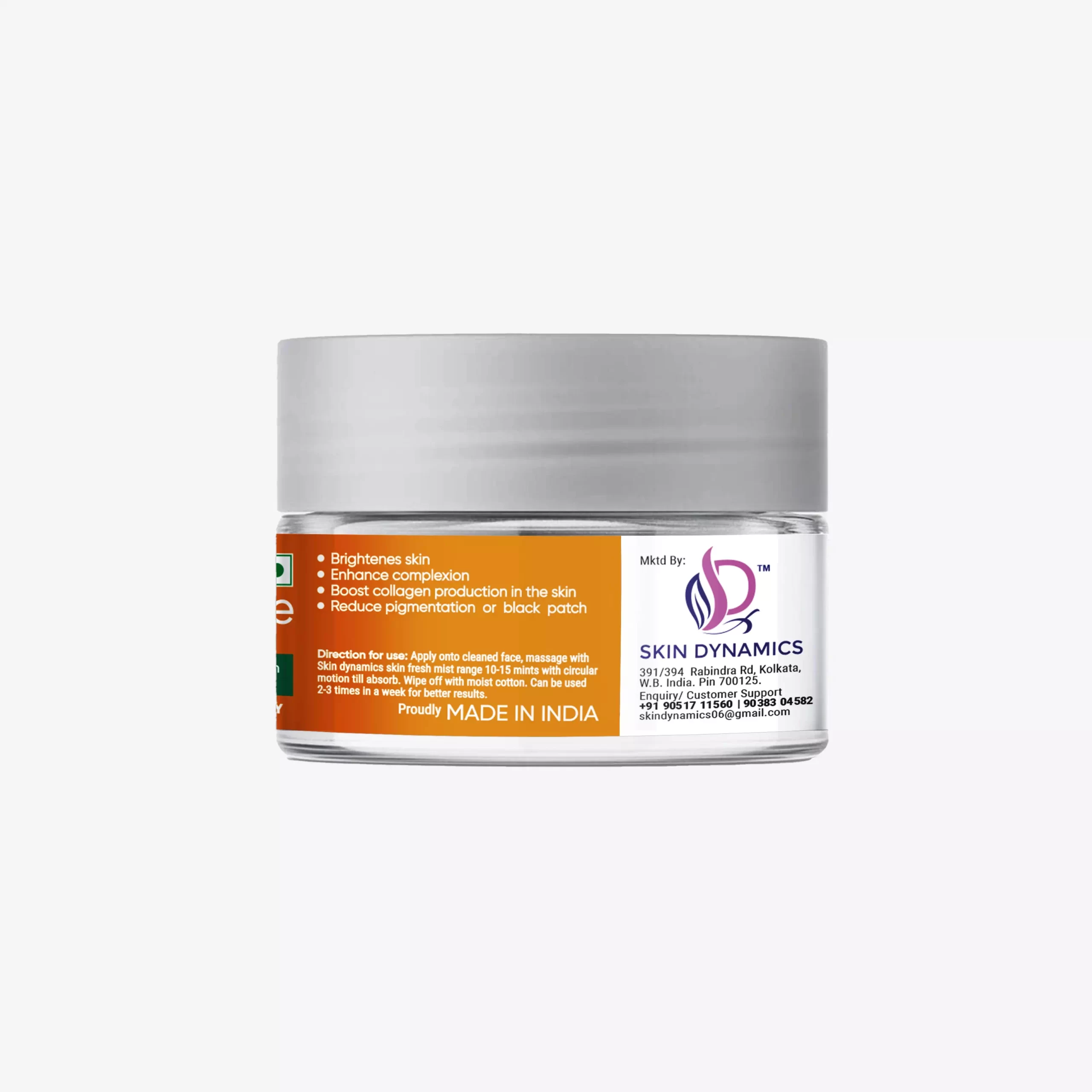 Direction for use: Apply onto cleaned face, massage with Skin dynamics skin fresh mist range 10-15 mints with circular motion till absorb. Wipe off with moist cotton. Can be used 2-3 times in a week for better results.
